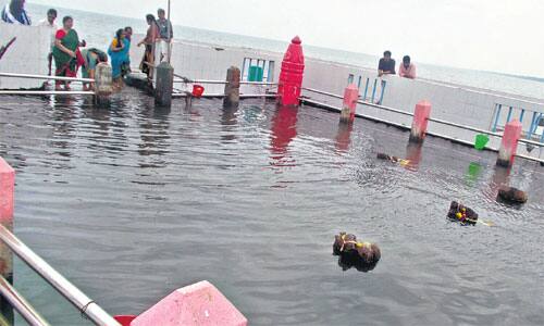 தேவிபட்டினம்: தேவிபட்டினம் நவபாஷாணத்தில் கடல் நீர்மட்டம் உயர்ந்து காணப்பட்டதால் பக்தர்கள் சிரமமடைந்தனர். தேவிபட்டினம் நவபாஷாணம் பிரசித்தி பெற்று வருவதால் உள்ளூர் மட்டுமின்றி வெளி மாநில பக்தர்களும் ஏராளமானோர் இங்கு வந்து செல்கின்றனர். இத்தகைய முக்கியத்துவம் வாய்ந்த இந்த நவபாஷாணம் பகுதியில் புயல் காரணமாக கடந்த ஒரு வாரமாக கடல் நீர்மட்டம் அவ்வப்போது உயர்ந்து காணப்படுகிறது. இந்நிலையில் நவபாஷாணம் அமைந்துள்ள வங்கக்கடல் பகுதியில் தற்போது அந்தமான் அருகே புதிய புயல் சின்னம் உருவாகியுள்ளதால் நேற்று அதிகளவில் கடல் கொந்தளிப்பாக காணப்பட்டது. இதனால் நவபாஷணத்தில் கடல் நீர்மட்டம் உயர்ந்து நவகிரகங்கள் கடல் நீரில் மூழ்கின. நவகிரகங்களை சுற்றிவந்து வழிபட முடியாத நிலையில் பக்தர்கள் சிரமமடைந்தனர். மேலும் கடல் நீர்மட்டம் உயர்ந்து காணப்பட்டதால் கடலுக்குள் இறங்கி பக்தர்கள் நவகிரகங்களை சுற்றிவர அனுமதி மறுக்கப்பட்டது. இதனால் பக்தர்கள் நவகிரகங்களை சுற்றி அமைக்கப்பட்டுள்ள நடை மேடை வழியாகவே சுற்றி வந்து நவகிரகங்களை வழிபாடு செய்தனர்.