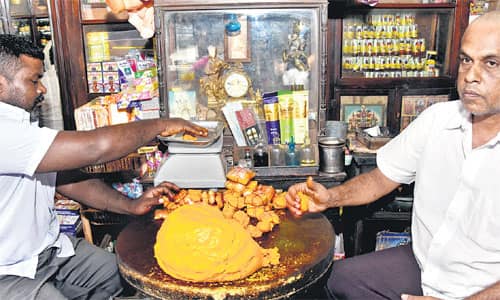 பைன் மரத்தின் கற்பூரம்: கீழ மாரட் வீதி சோமசுந்தரம்: கற்பூரத்தின் மூலப்பொருள் இமாச்சல பிரதேசம் பைன் மரங்களில் இருந்து உற்பத்தி செய்யப்படுகிறது.இங்கு குறைந்தளவு மட்டுமே மூலப்பொருள் கிடைக்கிறது. எனவே சீனா, இந்தோனேசியாவை நம்பி தொழில் செய்கிறோம். இந்நாடுகளில் இருந்து பைன் மரத்தில் இருந்து மூலப்பொருள் தயாரித்து ஏற்றுமதி செய்கின்றனர். இதனால் விலை அதிகம். மெழுகு கலப்படத்தில் சிலர்சூடம் தயாரிக்கின்றனர். அது சுற்றுச்சூழலுக்கு கேடு விளைவிக்கும். கண், மூச்சு தொந்தரவு ஏற்படும். சுவாமி வழிபாட்டில் கற்பூரம் முதலிடத்தில் உள்ளது. எனவே ஒரிஜினல் மூலப்பொருளை பயன்படுத்தி கட்டி, வில்லை கற்பூரம் தயாரிக்கிறோம், என்றார்.