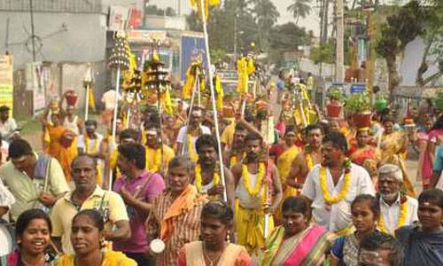 ஈரோடு: ஈரோடு, கருங்கல்பாளையம் வண்டியூரான் கோவில் வீதி, கருப்பண்ணசாமி கோவில், 36வது ஆண்டு பொங்கல் விழா கடந்த, டிச., 1ல் பூச்சாட்டுதலுடன் தொடங்கியது. நேற்று தீர்த்த ஊர்வலம், அலகு குத்தும் நிகழ்ச்சி நடந்தது. இதையொட்டி, கருங்கல்பாளையம் காவிரியாற்றில் இருந்து, 100க்கும் மேற்பட்டோர் தீர்த்தம் எடுத்து ஊர்வலமாக வந்தனர். வேண்டுதல் வைத்து விரதமிருந்த பக்தர்கள், மயில் தோகை வேல் அலகு, முதுகு வாள் அலகு, வேல் அலகு குத்தி வந்தனர். காவிரிக்கரை செக்போஸ்ட், வாய்க்கால் பாலம் வழியாக, தீர்த்த ஊர்வலம் கோவிலில் முடிந்தது. ஈரோடு, கருங்கல்பாளையம், பள்ளிபாளையம் வண்டியூரான் கோவில் வீதிகளை சேர்ந்த மக்கள், கலந்து கொண்டனர்.
