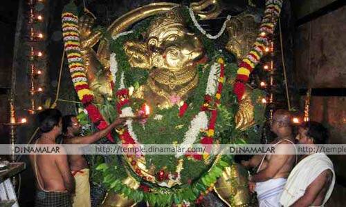* கிருஷ்ணகிரி தேவசமுத்திரம் காட்டுவீர ஆஞ்சநேயர் கோவிலில், நேற்று சிறப்பு பூஜை நடந்தது. மாலை, 6:00 மணிக்கு, தங்கத்தேர் பிரகார உற்சவம் நடந்தது. இதையொட்டி, கிருஷ்ணகிரி மாவட்டம் மற்றும் கர்நாடகா மாநிலத்திலிருந்து, 10 ஆயிரத்திற்கும் மேற்பட்ட பக்தர்கள், நீண்ட வரிசையில் காத்திருந்து சுவாமி தரிசனம் செய்தனர். இதேபோல், கிருஷ்ணகிரி பழைய பேட்டை லட்சுமி நாராயணசுவாமி கோவிலில், சிறப்பு பூஜை நடந்தது. ஆஞ்சநேயர் திருவீதி உலா வந்து, பக்தர்களுக்கு அருள்பாலித்தார்.