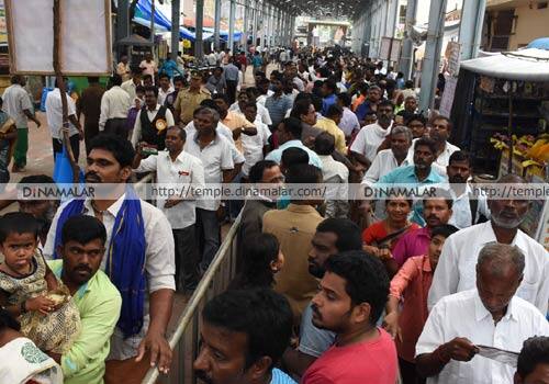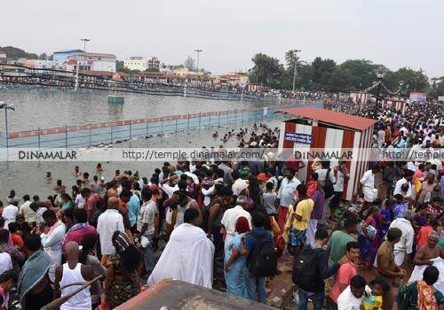 மார்கழி மாதத்தில் கடும் பனி நிலவி வரும் நிலையில் சனி பெயர்ச்சி விழாவில் பங்கேற்று சனி பகாவானை தரிசிக்க வந்த பக்தர்கள் குளிரையும் பொருட்படுத்தாமல் தங்கள் குழந்தைகளோடு தரிசனத்திற்கு வந்தனர்.சனி பெயர்ச்சி விழாவில் பங்கேற்க வந்த பக்கதர்கள் முன்னதாக நள குளத்தில் நல்லெண்ணெய் தேர்த்து நீராடி தங்களது பழைய ஆடைகளை குளத்தில் விட்டு சென்றனர். நேற்று அதிகாலை முதலே சுமார் 2 லட்சம் பக்தர்கள் குளத்தில் நீராடியதால் அப்பகுதியே பக்தர்கள் வெள்ளத்தால் மூழ்கியது. திருநள்ளாறு சனி பெயர்ச்சி விழாவில் பங்கேற்க நாட்டின் பல்வேறு பகுகுதிகளில் இருந்து நேற்று இரவு முதலே வாகனங்களில் வரத்துவங்கினர் இதனால் அப்பகுதியில் எல்லையிலேயே வாகனங்களை நிறுத்தி விட்டு நடத்தே சென்று சாமி தரிசனம் செய்தனர்.