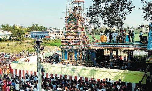 நாயக்கன்பேட்டை : நாயக்கன்பேட்டை படவேட்டம்மன் கோவிலில், கும்பாபிஷேகம் நேற்று கோலாகலமாக நடந்தது. வாலாஜாபாத் ஒன்றியம், நாயக்கன்பேட்டை கிராமத்தில், பழமை வாய்ந்த படவேட்டம்மன் கோவில் உள்ளது. இக்கோவிலின் திருப்பணிகள் முடிந்து, 69 ஆண்டுகளுக்கு பின், நேற்று காலை, 9:48 மணிக்கு, அனுஷ நட்சத்திரத்தில் மஹா கும்பாபிேஷகம் நடந்தது.கும்பாபிஷேகத்தை முன்னிட்டு, 4ம் தேதி காலை, 9:00 மணிக்கு கிராம மூர்த்திகளுக்கு சிறப்பு அபிஷேகம்; மாலை, 4:00 மணிக்கு படவேட்டம்மன் பரிவார மூர்த்திகளுடன் கரிக்கோலம் நிகழ்ச்சியுடன் விழா துவங்கியது.நேற்று காலை, நான்காம் கட்ட யாக பூஜைகளை முன்னிட்டு, 8:30 மணிக்கு நாகம்மன்; காலை, 9:00 மணிக்கு சப்த கன்னியர், துரவுபதி சமேத பஞ்ச பாண்டவர்கள். காலை, 9:48 மணிக்கு படவேட்டம்மன் கோபுர கலசத்திற்கு, சிவாச்சாரியார்கள் புனித நீரூற்றி கும்பாபிஷேகம் செய்தனர்.பக்தர்கள் ஓம் சக்தி...ஓம் சக்தி... என, கோஷம் எழுப்பி, அம்மனை வழிபட்டனர்.