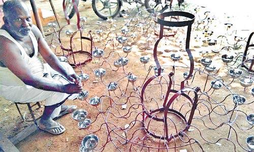 3 தலைமுறைகளாக இரும்பிலான தீச்சட்டிகளை செய்து வரும் கண்ணன் குடும்பத்தினர்