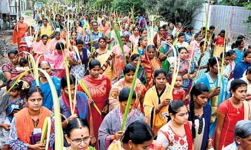 விருதுநகர் : விருதுநகரில் துாய இன்னாசியார் ஆலயத்தில் பாதிரியார் பெனடிக்ட் அம்புரோஸ்ராஜ் , துணைபாதிரியார் ஜான்பால் தலைமையில் குருத்தோலை ஊர்வலம் நகராட்சி அலுவலகம், ரயில்வே மேம்பாலம், அருப்புக்கோட்டை சாலை, எம்.ஜி.ஆர்., சிலை வழி சென்றது. அதனை தொடர்ந்து திருப்பலியும், மறையுரையும் நடந்தது. பாண்டியன் நகர் துாய சவேரியர் ஆலயத்தில் பாதிரியார் ஆரோக்கியசெல்வம், எஸ்.எப்.எஸ். மேல்நிலைப் பள்ளி முதல்வர் அருள் பிரான்சிஸ் தலைமையில் குருத்தோலை ஊர்வலம் நடந்தது. திருப்பலி, மறையுரை நடந்தன.விருதுநகர் நிறைவு வாழ்வு ஜெபமாலை அன்னை ஆலயத்தில் பாதிரியார் தாமஸ் வெனிஸ் தலைமையில, ஆர்.ஆர். நகர் துாய வேளாங்கண்ணி அன்னை ஆலயத்தில் பாதிரியார் பெனடிக்ட் பர்ணபாஸ் தலைமையில் குருத்தோலை ஊர்வலம், திருப்பலி நடந்தன.