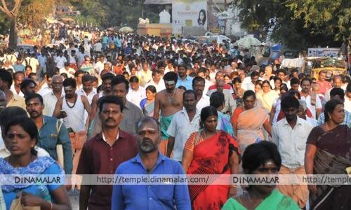 திருவண்ணாமலை: திருவண்ணாமலை அருணாச்சலேஸ்வரர் கோவிலில் பவுர்ணமி கிரிவலம் வர உகந்த நேரம் தெரிவிக்கப்பட்டுள்ளது. பங்குனி மாத பவுர்ணமி வரும், 30 இரவு, 7:31 மணி முதல், 31 மாலை, 6:30 மணி வரை உள்ளது. இந்த நேரத்தில், கிரிவலம் வர உகந்த நேரம். மேலும், பவுர்ணமி மற்றும் விடுமுறை நாட்கள் என தொடர்ந்து, நான்கு நாட்கள் வருவதால், 29 முதல் ஏப்., ௧ம் தேதி வரை பக்தர்கள் கூட்டம் அதிகம் இருக்கும். எனவே, நான்கு நாட்களும், அமர்வு தரிசனத்திற்கு அனுமதி இல்லை என, கோவில் நிர்வாகம் அறிவித்துள்ளது.