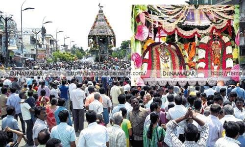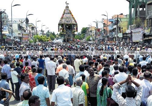 பஞ்ச பூத தலங்களில் முதன்மையாக கருதப்படும் ஏகாம்பரநாதர் கோவிலின், பங்குனி உத்திர திருவிழாவின், பிரபல உற்சவமான, தேர் திருவிழா நேற்று கோலாகலமாக நடைபெற்றது. இதை முன்னிட்டு, நேற்று காலை, 6:00 மணிக்கு ஏகாம்பரநாதர், ஏலவார் குழலி அம்பாள் திருத்தேரில் எழுந்தருளினர். அதிகாலையில் இருந்து பக்தர்கள் தேரடியில் காத்திருந்தனர். காலை, 7:30 மணிக்கு, தீபாராதனை முடிந்து, தேர் நிலையில் இருந்து புறப்பட்டது. பல மாவட்டங்களில் இருந்து, சிவனடியார்கள் வந்திருந்தனர். சிவ பூத கண வாத்தியங்கள், பம்பை, கேரள செண்டை மேளம், கோலாட்டம், மாணவியரின் பரத நாட்டியம், திருவாசகம் பாடல் போன்றவற்றை பக்தர்கள் இசைத்து சென்றனர். நான்கு ராஜ வீதிகளிலும் பக்தர்கள் அன்னதானம் வழங்கினர். எனினும், ஆங்காங்கே சுத்தமான தண்ணீர் தானமாக வழங்கியிருந்தால், சிறப்பாக இருந்திருக்கும். நான்கு ராஜ வீதிகளையும் சுற்றி, பகல், 12:45 மணிக்கு, தேர் நிலையை அடைந்தது.
