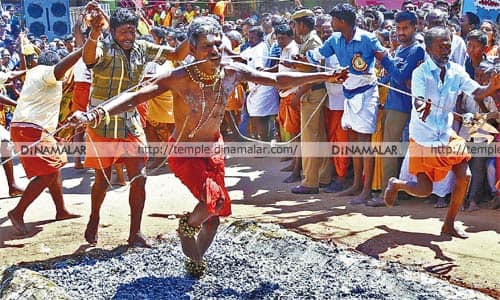 கருமாரியம்மன் கோயிலில் பூக்குழி இறங்கிய பக்தர்கள்