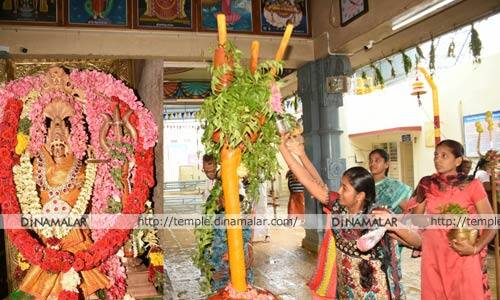 உடுமலையில், பிரசித்தி பெற்ற மாரியம்மன் கோவில் அமைந் துள்ளது. அறநிலையத்துறையின் கட்டுப்பாட்டிலுள்ள கோவிலில் ஆண்டுதோறும் பங்குனிமாதத்தில் தேர்த்திருவிழா நடத்தப்படுகிறது. நடப்பாண்டில் வரும் ஏப்., 5ம்தேதி தேரோட்டம் நடைபெறவுள்ளது. இந்நிலையில், தேர்த்திருவிழாவுக்காக, இன்று(மார்.,29ல்) பெண்கள் கம்பத்திற்கு மஞ்சள் நீர் ஊற்றி வழிபட்டனர். அம்மன் சிறப்பு அலங்காரத்தில் பக்தர்களுக்கு அருள்பாலித்தார். ஏராளமானோர் தரிசனம் செய்தனர்.