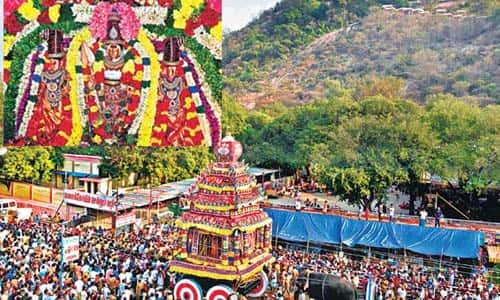 * தேர் நிலையில் இருந்து கிரிவீதியில் வலம்வரும்போது யானை கஸ்தூரி பின்னால் தேரை தள்ளிச்சென்றது.