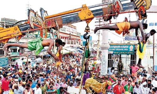 பங்குனி உத்திரதிருவிழா மார்ச் 24 முதல் ஏப்.,2 வரை நடக்கிறது. ஈரோடு மாவட்டம் கொடுமுடியில் இருந்து பக்தர்கள் தீர்த்தக்காவடியுடன் பழநிக்கு பாதயாத்திரையாக வந்து செல்கின்றனர். அவர்கள் அலகு குத்தியும், மயில் காவடிகள், எடுத்து கிரிவீதியை வலம் வந்து மலைக்கோயிலில் நேர்த்திக்கடன் செலுத்துகின்றனர். நேற்று சேலம் மாவட்டத்தைச் சேர்ந்த பக்தர்கள் பறவைக்காவடி எடுத்து வந்தனர். ஒரு பக்தர் உடல்முழுவதும் அலகு குத்தி டூவீலரில் கிரிவலம் வந்தார். நேற்று கூட்டம் அதிகரித்ததால் வின்ச், ரோப்கார் ஸ்டேஷனில் 2மணிநேரமும் , மலைக்கோயிலில் 3 மணிநேரமும் காத்திருந்து தரிசனம் செய்தனர்.