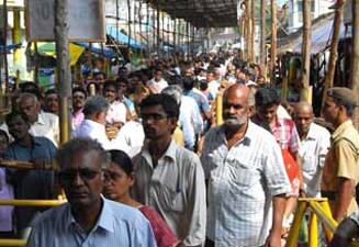 காரைக்கால் : திருநள்ளார் சனீஸ்வர பகவானை நேற்று 3 லட்சம் பக்தர்கள் தரிசனம் செய்தனர். காரைக்கால் திருநள்ளார் சனீஸ்வரர் கோவிலில் கடந்த மாதம் 21ம் தேதி சனிப்பெயர்ச்சி நடைபெற்றது. அதைத் தொடர்ந்து வந்த ஒவ்வொரு சனிக்கிழமைகளிலும் கோவிலுக்கு பக்தர்களின் கூட்டம் அதிகரித்துக் கொண்டே வருகிறது. நேற்று முன்தினம் தரிசனத்தில் மட்டும் 3 லட்சத்திற்கும் அதிகமான பக்தர்கள் கலந்து கொண்டனர். சாமியை தரிசிக்க ஏற்பாடு செய்யப்பட்டிருந்த அனைத்து தரிசன வழிகளில் பக்தர்கள் ஒரு கிலோ மீட்டர் தூரத்திற்கு காத்திருந்தனர்.