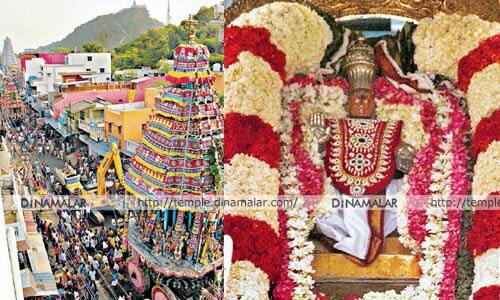 இக்கோவிலின் சித்திரை பெருவிழா, ஆண்டு தோறும் விமரிசையாக கொண்டாடப்படுகிறது. அதன்படி இந்தாண்டு, 20ம் தேதி கொடியேற்றத்துடன் துவங்கியது. வேதகிரீஸ்வரர் தினசரி காலை மற்றும் இரவு நேரங்களில் வெவ்வேறு வாகனங்களில் எழுந்தருளி, பக்தர்களுக்கு அருள்பாலித்து வந்தார். 22ம் தேதி, 63 நாயன்மார்கள் ஊர்வலம் நடந்தது. இதையடுத்து, முக்கியமான பிரதான விழாவான, தேர்த் திருவிழா நேற்று விமரிசையாக நடந்தது. அலங்கரிக்கப்பட்ட ஐந்து தேர்களில் வேதகிரீஸ்வரர், திரிபுர சுந்தரி அம்மன், விநாயகர், முருகர், சண்டிகேஸ்வரர் ஆகியோர் எழுந்தருளினர். காலை, 6:00 மணிக்கு, தேரடியிலிருந்து ஐந்து தேர்களையும், பக்தர்கள் வடம் பிடித்து இழுக்க துவங்கினர். அப்போது, ‘நமச்சிவாயா... வேதகிரீஸ்வரா...’ என, மெய் சிலிர்க்க கோஷங்கள் எழுப்பினர்.