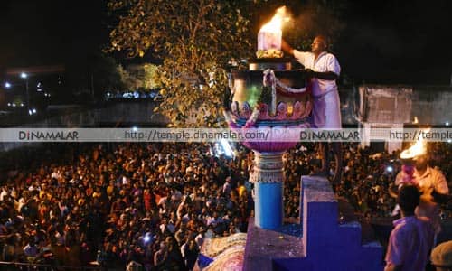 மயிலம்: சித்ரா பவுர்ணமி விழாவை முன்னிட்டு விழுப்புரம் மாவட்டம் திருவக்கரை வக்ர காளியம்மன் கோயிலில் நள்ளிரவில் மெகா தீபம் ஏற்றப்பட்டது.