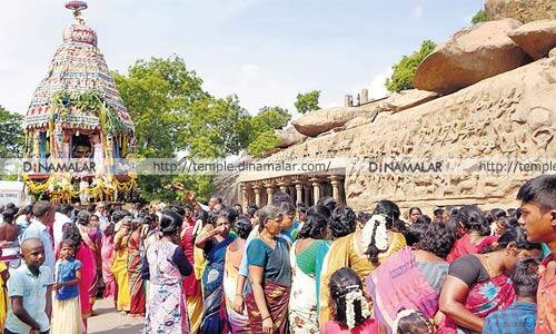 மாமல்லபுரம்:மாமல்லபுரம், ஸ்தலசயன பெருமாள், திருத்தேரில் கோலாகலமாக வீதியுலா சென்றார்.இக்கோவிலில், சித்திரை பிரம்மோற்சவ விழா, கடந்த 23ல் கோலாகலமாக துவங்கி, நாள்தோறும், காலை, இரவு என, பல்வேறு உற்சவ சேவைகள் நடக்கின்றன. ஏழாம் நாள் முக்கிய உற்சவமாக, நேற்று, சுவாமி, திருத்தேரில் கோலாகலமாக வீதியுலா சென்றார். கோவிலில், காலை தின வழிபாடு, ரத பிரதிஷ்டை ஹோமம் என நடைபெற்று, ராஜ அலங்கார சுவாமி, தேவியருடன், காலை, 6:20 மணிக்கு, அலங்கார திருத்தேரில் எழுந்தருளினார். பூதத்தாழ்வார், அவருக்கு, மாப்பிள்ளை மரியாதை செலுத்தி அளித்த ஆடை சாற்றி வழிபட்டு, நாலாயிர திவ்விய பிரபந்த, வேதபாராயண, மங்கல இசை முழங்கி, 8:30 மணிக்கு, தேர், நிலையிலிருந்து புறப்பட்டது.பக்தர்கள் கோவிந்தா முழக்கத்துடன், ராஜ வீதிகளில், தேரை வடம்பிடித்து இழுத்துச் சென்று, சுவாமியை தரிசித்து வழிபட்டனர். வீதியுலா முடிந்து, தேர் நிலையை அடைந்து, சுவாமி கோவிலை அடைந்தார். மாலை, சுவாமிக்கு வசந்த திருமஞ்சன உற்சவம் நடந்தது. உற்சவ கட்டளைதாரரான ஆளவந்தார் அறக்கட்டளை நிர்வாகத்தினர், பக்தர்களுக்கு, காலை, பகலில், அன்னதானம் வழங்கினர். இணை ஆணையர், கே.பி.அசோக்குமார் மற்றும் செயல் அலுவலர்கள் பங்கேற்றனர்.