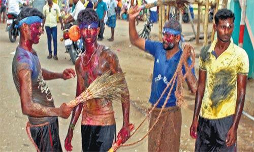 ஆண்டிபட்டி, ஆண்டிபட்டி அருகே மறவபட்டி முத்தாலம்மன் கோயில் பொங்கல் விழாவில் துடைப்பத்தால் அடிக்கும் வினோத நிகழ்ச்சி நடந்தது. மறவபட்டி முத்தாலம்மன் கோயில் விழா மூன்று நாட்கள் நடந்தது. விழாவில் அம்மனுக்கு கரகம் எடுத்து சிறப்பு பூஜைகள், வழிபாடுகள் செய்தனர். காப்புக்கட்டி விரதம் இருந்த பக்தர்கள் தீச்சட்டி, பால்குடம் எடுத்து நேர்த்திக்கடன் செலுத்தினர். நிறைவு நாள் விழாவில் மாமன், மைத்துனர் உறவு முறை கொண்டவர்கள் முத்தாலம்மன் கோயில் முன்பு கூடுவர். அனைவரும் உடல் முழுவதும் சகதி பூசிக்கொண்டு கோயில் வளாகத்தில் விழுந்து வணங்கிய பின் துடைப்பத்தால் ஒருவரை ஒருவர் அடித்துக் கொள்வர். துடைப்பத்தால் அடிப்பதை சந்தோஷமாக ஏற்றுக்கொண்டு, குதுாகலத்தை வெளிப்படுத்துவர். அம்மன் முன்னிலையில் துடைப்பத்தால் அடித்துக் கொள்வதால், உறவு முறை பலப்படும் என்றும், கருத்து வேறுபாடுகள் மறையும் என்ற நம்பிக்கையுடன் கடந்த பல ஆண்டுகளாக இந்த நிகழ்வை தொடர்கின்றனர்.