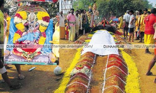 திருத்தணி பழைய திரவுபதியம்மன் கோவிலில், தீமிதி திருவிழா கடந்த மாதம், 19ம் தேதி கொடியேற்றத்துடன் துவங்கியது. தினமும், மூலவருக்கு சந்தன காப்பு, மதியம், மகாபாரத சொற்பொழிவு, இரவு நாடகம் மற்றும் உற்சவர் அம்மன் வீதியுலா வந்தது. இந்நிலையில் நேற்று, 18ம் நாளில், காலை, 9:00 மணிக்கு, கோவில் வளாகத்தில், துரியோதனன் படுகளம் நடந்தது. நிகழ்ச்சியில், துரியோதனை படுகளம் பகுதிக்கு இழுத்து வந்து வதம் செய்யும் நிகழ்ச்சி நடந்தது. பின், துரியோதனன் ரத்தத்தால் திரவுபதியம்மன் கூந்தல் முடிக்கப்பட்டது. தொடர்ந்து, கோவில் வளாகத்தில், திருத்தணி மற்றும் அதை சுற்றியுள்ள, 100க்கும் மேற்பட்ட கிராமங்களில் இருந்து, ஆயிரக்கணக்கான பெண்கள் வந்து பொங்கல் வைத்து, அம்மனுக்கு படைத்து வழிபட்டனர். சிலர், ஆடு, கோழி பலியிட்டும் வழிபட்டனர்.