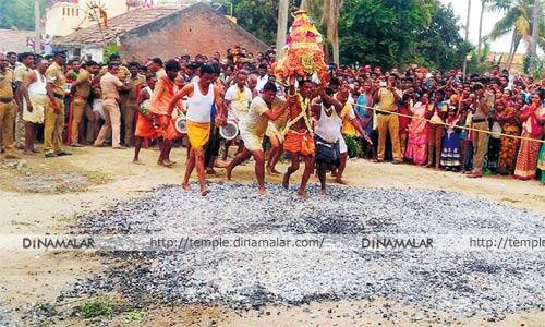 திருக்கோவிலுார்: திருக்கோவிலுார் அடுத்த குலதீபமங்கலம் திரவுபதியம்மன் கோவில் தேர் திருவிழாவில் ஏராளமான பக்தர்கள் கலந்து கொண்டனர். திருக்கோவிலுார் அடுத்த குலதீபமங்கலம் கிராமத்தில் உள்ள பழமையான தர்மராஜா திரவுபதியம்மன் கோவிலில்‚ கடந்த மாதம் 20ம் தேதி‚ கொடியேற்றத்துடன் பிரம் மோற்சவ விழா துவங்கியது. தினசரி பாரதக்கதை‚ சுவாமி புறப்பாடு நடந்து வந்தது. விழாவின் முக்கிய நிகழ்ச்சியாக, 6ம் தேதி இரவு அலங்கரிக்கப்பட்ட திரவுபதி சமேத அர்சுணன் தேரில் எழுந்தருளினார். ஏராளமான பக்தர்கள் தேரை வடம்பிடிக்க, தேர் முக்கிய வீதிகள் வழியாக சென்று நிலையை அடைந்தது. நேற்று முன்தினம் அலங்கரிக்கப்பட்ட கரகம் சுவாமியுடன் எழுந்தருளி வீதியுலா நடந்தது. மாலை5:00 மணிக்கு‚ கரகம் தீ குண்டத்தில் இறங்க தொடர்ந்து வேண்டுதல் உள்ள பக்தர்கள் தீமிதித்து நேர்த்திக்கடன் செலுத்தினர். விழாவில் சுற்றுவட்டாரத்தை சேர்ந்த ஏராளமான பக்தர்கள் கலந்து கொண்டனர். திருக்கோவிலுார் டி.எஸ்.பி.‚ வீமராஜ் தலைமையில் நுாற்றுக்கும் மேற்பட்ட போலீசார் பாதுகாப்பு பணியில் ஈடுபட்டனர்.