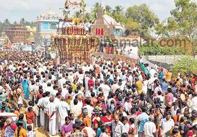 கும்பகோணம் : திருவிடைமருதூர் மகாலிங்கசுவாமி கோவிலில் ஒரு கோடி ரூபாய் மதிப்பில் உருவாகியுள்ள, அம்பாள் தேர் வெள்ளோட்டத்தில் ஆயிரக்கணக்கான பக்தர்கள் வடம்பிடித்து இழுத்தனர். கும்பகோணம் அருகே திருவிடைமருதூரில் திருவாவடுதுறை ஆதீனத்துக்குச் சொந்தமான, பெருநலமாமுலையம்மை உடனாய மகாலிங்க பெருமான் கோவில் உள்ளது. மிகவும் பழமையும், பெருமையும் வாய்ந்த இங்கு, தேரோட்டம் பிரசித்தி பெற்றது. தேரோட்டம் நடைபெறாமல் நின்று, பல ஆண்டுக்கு பின், 2007ம் ஆண்டு, மகாலிங்கசுவாமி சேவா அறக்கட்டளை துவக்கப்பட்டு, தேர்த் திருப்பணி துவங்கப்பட்டது. அப்போது, பக்தர்களின் நன்கொடை மூலம், 5 கோடி ரூபாய் மதிப்பில், அனைத்து தேர் திருப்பணிகள் செய்துவிட திட்டமிடப்பட்டது. அதன்பின், முதலில் தேரடி விநாயகர் கோவில் திருப்பணி செய்யப்பட்டு, கும்பாபிஷேகம் நடந்தது. இதில், ஐந்து தேரடி மண்டபங்களும், திருப்பணி செய்யப்பட்டன. 2010ம் ஆண்டில், தேர் வெள்ளோட்டம் விடப்பட்டது. 2011ம் ஆண்டின், தைப்பூச பெருவிழாவில், சுவாமி தேரோட்டம், அதி விமரிசையாக நடந்தது. இந்த ஆண்டுக்கான தேர்த் திருப்பணி பணி நிறைவுற்ற நிலையில், நேற்று அம்பாள் தேர் வெள்ளோட்டம் நடந்தது.தேருக்கு சிறப்பு அபிஷேகங்கள், சிறப்பு கட அபிஷேகம் நடந்தது. ஆயிரக்கணக்கான பக்தர்கள் கலந்து கொண்டு, தேர் வடம் பிடித்து இழுத்துச் சென்றனர்.