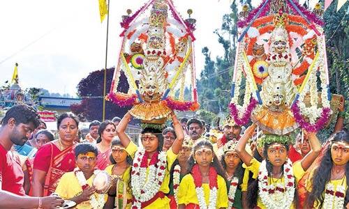 குன்னுார்: குன்னுார் வெலிங்டன் அருகே சின்னவண்டிசோலையில் அமைந்துள்ள தேவி கருமாரியம்மன் கோவிலில், 113வது ஆண்டு கரக உற்சவ விழா கடந்த , 10ம்தேதி கொடியேற்றதுடன் துவங் கியது. தொட ர்ந்து, நாள்தோறும் அபிஷேக ஆராதனை, உச்சிகால பூஜை, அன்னதானம் ஆகியவை நடந்தன. திருவிழா நாளான நேற் று, பூகுண்டம் இறங்குதல், கங்கையையை அடைதல், சிறப்பு பூஜைகள் ஆகியவை நடந்தன. முக்கிய நிகழ்ச்சியாக, 15 நாட்களாக விரதம் இருந்து வரும் பெண்கள் , சிறுமியர் பாரம்பரிய முறைப்படி மஞ்சள் பூசியபடி விழாவில் பங்கேற்றனர். இவர்களுக்கும், பக்தர்களுக்கும் நடந்த , சாட்டையடி நிகழ்ச்சி பக்தர்களை பரவசப்படுத்தியது. கரக உற்சவ விழாவில், திரளானபக்தர்கள் பங்கேற்றனர்.