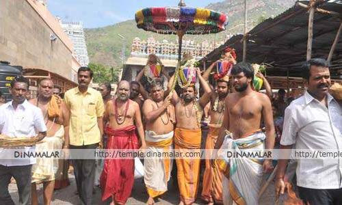 திருவண்ணாமலை: அக்னி நட்சத்திரம், நேற்று நிறைவடைவதை முன்னிட்டு, கடந்த, 26ல், கணபதி பூஜையுடன், 1,008 கலச பூஜை, நேற்று முன்தினம் காலை, இரண்டாவது கால கலச பூஜை, மாலை, 6:30 மணிக்கு, மூன்றாவது கால கலச பூஜை நடந்தன.நேற்று காலை, 7:00 மணிக்கு நான்காவது கால கலச பூஜை நடந்தது. அருணாசலேஸ்வரருக்கு, யாகசாலையில் வைக்கப்பட்ட கலசபுனித நீரால், சிறப்பு அபிஷேகம் செய்யப்பட்டு, அக்னி தோஷ நிவர்த்தி பூஜை நடந்தது. தொடர்ந்து, இரவு சுவாமி வீதியுலா நடந்தது.