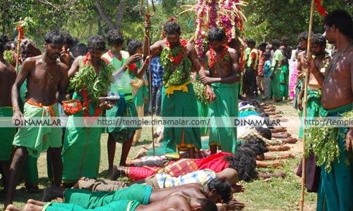 வன தேவதை திருவிழா: பக்தர்கள் மீது நடந்து பூசாரி ஆசி