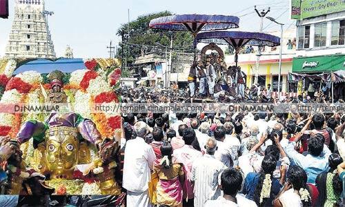 வழக்கமாக புறப்பாடு முடிந்து, காலை, 11:30க்குள், கோவிலை பெருமாள் சென்றடைவார். நேற்று காலை கோபுர தரிசனம் முடிந்து, சுவாமி புறப்பட்டதும், சுவாமியை துாக்கி செல்லும் தடி பழுதானது. அதனால், அதை மாற்றி விட்டு வேறு தடி பொருத்தி, சுவாமி புறப்பட தாமதம் ஆனது. வெயில் அதிகமாக இருந்ததால், கோடியக்காரர்கள் நீண்ட துாரம் சுமந்து செல்வதில் சிரமம் ஏற்பட்டது. அதனால் அடிக்கடி நிறுத்தி சென்றனர். சுவாமி ஊர்வலத்தில் பங்கேற்ற பெண்களுக்கு, செயின் பறிப்பிலிருந்து காத்துக் கொள்ள, போலீசார், சேப்டி பின் வழங்கினர். இந்த கருட சேவை உற்சத்தில், ஆயிரக்கணக்கான மக்கள் பங்கேற்று சுவாமியை வழிப்பட்டனர். வெளியூர்களிலும் இருந்து ஏராளமான பக்தர்கள் பங்கேற்றனர். பக்தர்கள் வெள்ளத்தில் வரதராஜப் பெருமாள் நீந்திச் சென்றார். கருட வாகனத்தில் வரதராஜப் பெருமாள் எழுந்தருளி, பக்தர்களுக்கு அருள்பாலித்தார்.