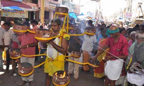 கரூர்: கரூர் மாரியம்மன் கோவில் வைகாசி பெரு விழாவையொட்டி, இன்று மாலை, கம்பம் ஆற்றுக்கு செல்லும் நிகழ்ச்சி நடக்கிறது. கரூர் மாரியம்மன் கோவில் வைகாசி திருவிழா, கடந்த, 13ல், கம்பம் நடுதலுடன் துவங்கியது. பூச்சொரிதல், காப்பு கட்டுதல், மகாசண்டி யாகம், மறுகாப்பு, தேரோட்டம் என, திருவிழா நிகழ்ச்சிகள் தினமும் நடந்தன. திருவிழாவின் இரண்டாவது நாளான நேற்று காலை முதல், அமராவதி ஆற்றிலிருந்து, பக்தர்கள் பறவை அலகு குத்தி பொக்லைன் இயந்திரத்தில் தொங்கியவாறு, கோவிலுக்கு ஊர்வலமாக சென்றனர். ஏராளமான பக்தர்கள் அக்னிச்சட்டி எடுத்து நேர்த்திக் கடன் செலுத்தினர். திருவிழாவின் முக்கிய நிகழ்ச்சியாக இன்று மாலை, 5:15 மணிக்கு, கோவிலில் இருந்து கம்பம் அமராவதி ஆற்றுக்கு செல்லும் நிகழ்ச்சி நடக்க உள்ளது. அதை தொடர்ந்து ஆற்றில் பல்வேறு அமைப்புகள் சார்பில் வாண வேடிக்கை நடக்கிறது. அதையொட்டி, மாரியம்மன் கோவில் மற்றும் அமராவதி ஆற்றுக்கு செல்லும் சாலைகளில், பலத்த போலீஸ் பாதுகாப்பு போடப்பட்டுள்ளது.