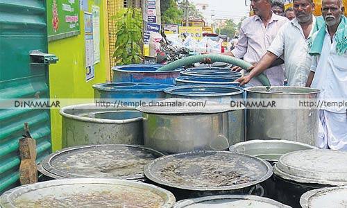 காஞ்சிபுரம் : அம்மனுக்கு மட்டுமே ஊற்றப்பட்டு வந்த கூழை, காஞ்சிபுரத்தில் வினோதமாக, பெருமாளுக்கும் வார்க்கும் பழக்கம் உள்ளது.காஞ்சிபுரம் வரதராஜ பெருமாள் கோவில், வைகாசி பிரம்மோற்சவத்தின், ஏழாம் நாள் உற்சவமான தேரோட்டம் நாளை நடைபெற உள்ளது. விழாவில், உள்ளூர், வெளியூர்களில் இருந்து ஆயிரக்கணக்கான பக்தர்கள் பங்கேற்பர்.தேரோட்டத்தின் போது, நேர்த்திக்கடனாக புளியோதரை, பொங்கல், தயிர், சாம்பார், லெமன் உள்ளிட்ட பலவகை சாதங்களை பெருமாளுக்கு நைவேத்யம் செய்து, பக்தர்களுக்கு அன்னதானமாக வினியோகம் செய்யும் பழக்கம் உள்ளது.ஒரு சிலர், கோடை வெயிலுக்கு பக்தர்களுக்கு உடல் உஷ்ணத்தை குறைக்கும் வகையில் வாட்டர் பாக்கெட், மோர், ஜூஸ் உள்ளிட்ட குளிர்பானம் வழங்கி வருகின்றனர்.பெரும்பாலான, அம்மன் கோவில்களில், ஆடி திருவிழா உள்ளிட்ட திருவிழாவின் போது, அம்மனுக்கு கூழ் ஊற்றுவது வழக்கமாக உள்ளது. ஆனால், அம்மனுக்கு ஊற்றப்படுவது போல், காஞ்சிபுரத்தில், தேரில் பவனி வரும், வரதராஜ பெருமாளுக்கு, காஞ்சி புரம், லாரி சுமை ஏற்றி இறக்கும் தொழிலாளர்கள் கூழ் ஊற்றி வருகின்றனர்.இது குறித்து, காஞ்சிபுரம் மாவட்ட மகாத்மா காந்தி லாரி சுமை ஏற்றி, இறக்கும் தொழிலாளர் சங்கத் தலைவர், ஆர்.பழனி கூறியதாவது:கடந்த, 50 ஆண்டுகளுக்கும் மேலாக, கருட சேவை மற்றும் தேரோட்டத்தின் போது கூழ் ஊற்றி வருகிறோம். பலர், பல்வேறு வகையான உணவு வகைகளை வழங்கினாலும், நாங்கள் கோடை வெயிலுக்கு ஏற்ற வகையில், கூழ் ஊற்றி வருகிறோம்.இந்தாண்டு, 100 கிலோ கேழ்வரகு, 150 கிலோ நெய், 20 லிட்டர் தயிர், 50 கிலோ வெங்காயம் மூலம், கூழ் தயாரிக்கிறோம். கூழுக்கு தொட்டுக்கொள்ள, 100 கிலோ மாங்காய் ஊறுகாயும் செய் வழங்க உள்ளோம்.இவ்வாறு அவர் கூறினார். - நமது நிருபர் -