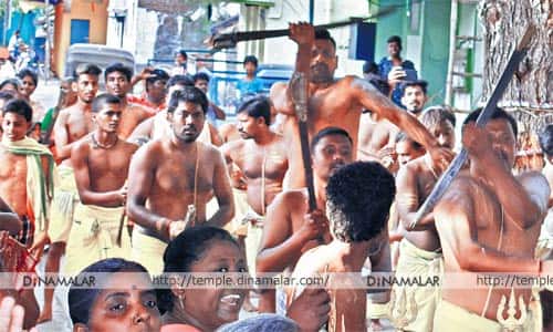 ராமலிங்க சவுடேஸ்வரி அம்மன் கோவிலில் கத்தி போடும் விழா