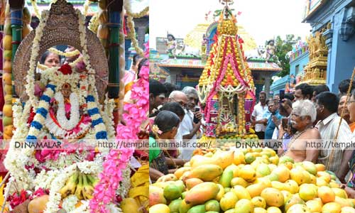 புதுச்சேரி: புதுச்சேரி வேதபுரீஸ்வரர் கோவிலில், மாங்கனி திருவிழாவையொட்டி, காரைக்கால் அம்மையாருக்கு மாங்கனிகள் வைத்து பூஜைசெய்யப்பட்டது. அறுபத்து மூன்று நாயன்மார்களில், புனிதவதியார் என்ற காரைக்கால் அம்மையாரும் ஒருவர். இவர் சிவபெருமானிடம் கொண்ட தீவிர பக்தி மற்றும் அவரது வாழ்க்கை வரலாற்றை விவரிக்கும் வகையில், புதுச்சேரி காந்தி வீதியில் உள்ள வேதபுரீஸ்வரர் கோவிலில், சிறுத்தொண்ட நாயனார் திருத்தொண்டு சபை சார்பில், ஆண்டுதோறும் மாங்கனி திருவிழா நடந்து வருகிறது. இவ்வகையில் 16ம் ஆண்டு மாங்கனிதிருவிழா நேற்று நடந்தது. காலை 9:00 மணிக்கு துவங்கி, மதியம் 12:00 மணி வரை வேதபுரீஸ்வரர், திரிபுரசுந்தரி மற்றும் காரைக்கால் அம்மையாருக்கு சிறப்பு அபிஷோகம் நடந்தது. தொடர்ந்து, காரைக்கால் அம்மையார், மாங்கனிகளால் அலங்கரிக்கப்பட்ட தேரில் எழுந்தருளி, ஆலய உள் பிரகார புறப்பாடு நடந்தது. அப்போது, அம்மையாருக்கு மாங்கனிகள் வைத்து படையல் செய்து, பூஜை நடந்தது. ஏராளனமான பக்தர்கள் சுவாமி தரிசனம் செய்தனர்.