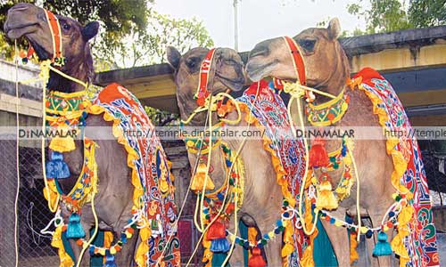 மதுரை, மதுரை மீனாட்சி அம்மன் கோயில் ஒட்டகம் சிவா மாரடைப்பால் நேற்று முன்தினம் இரவு இறந்தது. கோயிலுக்கு சொந்தமான கூடல் செங்குளம் நந்தவனத்தில் சிவா உடல் நேற்று அடக்கம் செய்யப்பட்டது. புதிய ஒட்டகம், குதிரை வாங்க கோயில் நிர்வாகம் ஏற்பாடு செய்து வருகிறது. இந்து கோயில்களில் யானை, ஒட்டகம், காளை, குதிரை பயன்படுத்துவது குறித்து மீனாட்சி அம்மன் கோயில் அர்ச்சகர் ஒருவர் கூறியதாவது: இறைவன் குடிகொண்டிருக்கும் கோயில்களில் அனைத்து ஜீவராசிகளும் சமமே என்ற தத்துவத்தை உணர்த்தும் நோக்கிலேயே கோயிலில் யானை, ஒட்டகம், காளை, குதிரை வளர்க்கப்படுகிறது. ஆகம விதிகளின் படி கோயில் திருவிழாக்கள், சுவாமி ஊர்வலங்களில் இவை கட்டாயம் இடம் பெற்றிருக்க வேண்டும்,என்றார்.