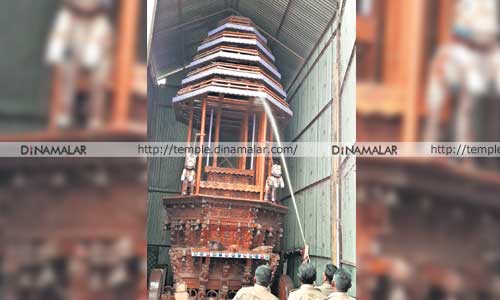 வத்திராயிருப்பு: வத்திராயிருப்பு முத்தாலம்மன் கோயில் தேரில் ஏற்பட்ட திடீர் தீ விபத்தில் சிற்பங்கள் சேதமானது. இக்கோயிலுக்கு சொந்தமான தேர் கோயில் அருகே நிறுத்தப்பட்டுள்ளது. பாதுகாப்பிற்காக தகரெஷட் போடப்பட்டு கதவுகள் அமைக்கப்பட்டுள்ளன. சுற்றிலும் கடைகள் உள்ளன. ெஷட்டின் அடிப்பகுதி இடைவெளி வழியாக பிளாஸ்டிக் கழிவுகள், குப்பை காற்றில் அடித்துச் செல்லப்பட்டு தேங்கியுள்ளன. இதன் அருகில் வீசப்பட்ட பீடி, சிகரெட் நெருப்பு உள்ளே சென்று பற்றியதில் நேற்று மாலை 5:30 மணிக்கு தேரிலும், தேரை சுற்றிய வடத்திலும் தீ பரவியது. ெஷட்டிலிருந்து கரும்புகை வெளியறியது. தீயணைப்பு துறையினர் தண்ணீரை பீய்ச்சி தீயை அணைத்தனர். இதில் வடம் முற்றிலும் எரிந்தது. தேரின் அரிய சிற்பங்களும் சேதமாகின. வத்திராயிருப்பு போலீசார் விசாரிக்கின்றனர்.