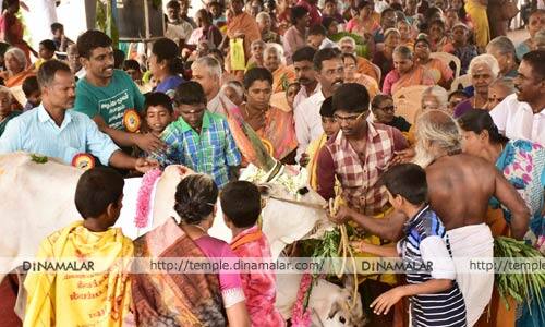 கோவை:திருக்கோவில் பக்தர்கள் பொதுநலச்சங்கம் மற்றும் பேரூர் பட்டீஸ்வர சுவாமி கோவில் பக்தர் பேரவை சார்பில், 200 வது மாத உழவாரப்பணி விழா முன்னிட்டு, 12 ராசிகளுக்கு கோமாதா பூஜை, பேரூர் சாந்தலிங்க அடிகளார் தமிழ்க் கல்லுாரி மைதானத்தில், நேற்று நடந்தது. இதை முன்னிட்டு, நேற்று காலை, 5:30 மணிக்கு, கல்லுாரி வளாகத்தில் கணபதி ேஹாமம் நடந்தது. பேரூர் பட்டீஸ்வர சுவாமி கோவிலில், பட்டீஸ்வரர், அம்பாள் மற்றும் பாலதண்டபாணி சுவாமிகளுக்கு அபிஷேக, அலங்கார பூஜையும், 63 நாயன்மார்களுக்கு சிறப்பு வழிபாடும் நடந்தது. கல்லுாரி மைதானத்தில் நடந்த நிகழ்ச்சியில், மடத்துக்கு சொந்தமான பசுவுக்கு முதலில் பூஜை செய்யப்பட்டு, பின், மைதானத்தில் நிறுத்தப்பட்டிருந்த, பசுக்களுக்கு பொதுமக்கள் தீவனங்கள் வழங்கி, பூஜை செய்தனர். பட்டீஸ்வரர் கோவில் ஓதுவார் ஞானமூர்த்தி தலைமையில், பூஜைகள் செய்யப்பட்டன. பேரூராதீனம் இளைய சந்நிதானம் சுவாமி வேதாந்தானந்தா, திருக்கோவில் பக்தர் பேரவை நிறுவனர் சண்முகநாதன் உள்ளிட்ட பலர் பங்கேற்றனர்.
