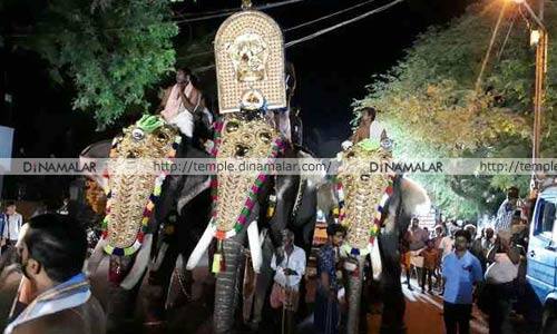 சத்தியமங்கலம்: ஐயப்பன் பொற்கோவில் முதலாமாண்டு விழாவை முன்னிட்டு, யானை மீது, ஐயப்ப சுவாமி வீதியுலா வந்தார். சத்தியமங்கலத்தில், பண்ணாரி சாலையில், பழைய தபால் நிலைய வீதியில், ஆற்றங்கரையில் ஐயப்பன் பொற்கோவில் அமைந்துள்ளது. கடந்தாண்டு புதிதாக கட்டப்பட்டு குப்பாபிஷேகம் நடந்தது. முதலாமாண்டு விழாவை முன்னிட்டு, ஐயப்ப சுவாமி, யானை மீது வைக்கப்பட்டு, நேற்றிரவு ஊர்வலமாக சென்றது. எஸ்.ஆர்.டி.,கார்னர் பகுதியில், ஒவ்வொரு வீதி வழியாகவும், ஊர்வலமாக அழைத்து கொண்டு, பொற்கோவில் அருகேயுள்ள, பவானி ஆற்றில் நீராதனை செய்து, பின் கோவிலுக்கு எடுத்து செல்லப்பட்டது. நிகழ்ச்சியில் ஏராளமான, பக்தர்கள் கலந்து கொண்டனர்.