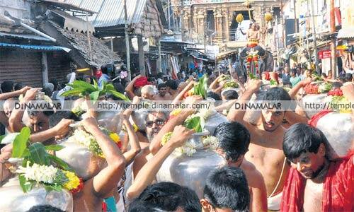 திருச்சி: ஸ்ரீரங்கம், ரங்கநாதர் கோவிலில், ரங்கநாச்சியாருக்கு ஜேஷ்டாபிேஷகத்தை முன்னிட்டு, காவிரியாற்றில் இருந்து, தங்க குடத்தில் புனிதநீர் நிரப்பி, யானையின் மீது ஊர்வலமாக கொண்டு செல்லப்பட்டு, ரெங்கநாச்சியாருக்கு திருமஞ்சனம் நடைபெற்றது.