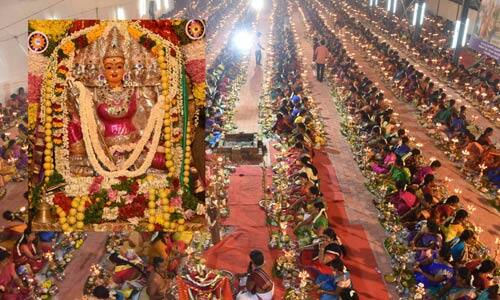 சிவகங்கை: சிவகங்கை அருகே சிரமம் கிராமத்தில் ஏழுமுக காளியம்மன் கோவிலில் மழை வேண்டி 1008 திருவிளக்கு பூஜை நடைபெற்றது. விழாவில் ஏராளமான பெண்கள் கலந்து கொண்டு வழிபாடு செய்தனர். திருவிளக்கு பூஜையில் சிறப்பு அலங்காரத்தில் ஏழுமுக காளியம்மன் பக்தர்களுக்கு அருள்பாலித்தார்.