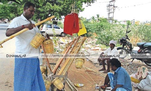 ஆடிக்கிருத்திகை விழா துவங்குவதற்கு மூன்று நாட்களே உள்ளதால், பக்தர்கள், காவடிகளை ஆர்வமுடன் வாங்கிச் செல்கின்றனர்.இது குறித்து, திருத்தணி பகுதியைச் சேர்ந்த காவடி வியாபாரி சங்கர் கூறியதாவது: ஆடிக்கிருத்திகைக்கு, அதிகளவிலான பக்தர்கள் காவடி எடுப்பர். இதற்காக, புதிய காவடிகள் தயாரித்து, விற்பனை செய்கிறேன். ஒரு காவடிக்கு தேவையான, கட்டை, மணி, கூடைகள் போன்றவை தயார் செய்து, 450 ரூபாய் முதல், அதிக பட்சமாக, 600 ரூபாய் வரை விற்பனை செய்கிறேன். ஒரு காவடிக்கு, குறைந்த பட்சம், 50 ரூபாய் முதல், 75 ரூபாய் வரை லாபம் கிடைக்கும். ஒரு மாதமாக, காவடிகளை தயார் செய்து, வீட்டிலேயே விற்று வந்தேன். ஆடிக்கிருத்திகை குறைந்த நாட்களே இருப்பதால், சாலையோரம் வைத்து விற்பனை செய்கிறேன். கடந்த, 40 ஆண்டுகளாக இத்தொழிலை செய்து வருகிறேன். இவ்வாறு அவர் கூறினார்.