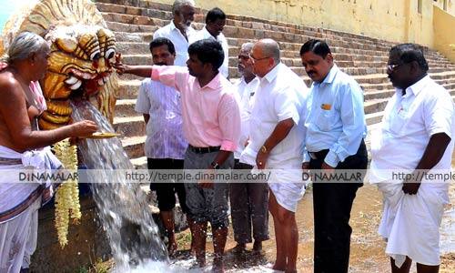 தஞ்சாவூர்: தஞ்சாவூர் மாவட்டம், கும்பகோணத்தில், சாரங்கபாணி கோவிலுக்கு சொந்தமான, பொற்றாமரை குளம் உள்ளது. உலக பிரசித்தி பெற்ற மகாமக பெருவிழாவின் போது, பொற்றாமரை குளத்திலும் பக்தர்கள் நீராடுவர். சிறப்பு பெற்ற பொற்றாமரை குளம், தண்ணீர் இன்றி வறண்டு காணப்பட்டது.மகாமக பெருவிழாவின் போது, காவிரி ஆற்றில் இருந்து, பொற்றாமரை குளத்திற்கு தண்ணீர் கொண்டு வருவதற்காக, 1 கி.மீ.,க்கு குழாய்கள் பதிக்கப்பட்டிருந்த போதிலும், காவிரி ஆற்றில் தண்ணீர் இல்லாததால், குளத்தில் தண்ணீர் நிரப்பவில்லை.தற்போது, தனியார் வங்கி நிதியுதவியுடன், கும்பகோணம் சோலையப்பன் தெருவில் உள்ள காவிரி ஆற்றின் படித்துறை பகுதியில், 7.5 குதிரை திறன் கொண்ட மோட்டார் பம்ப் செட் அமைத்து, பொற்றாமரை குளத்திற்கு தண்ணீர் கொண்டு வரப்படுகிறது. இன்னும், ஒரு வாரத்தில், பொற்றாமரை குளம் நிரம்பும் என, எதிர்பார்க்கப்படுகிறது.