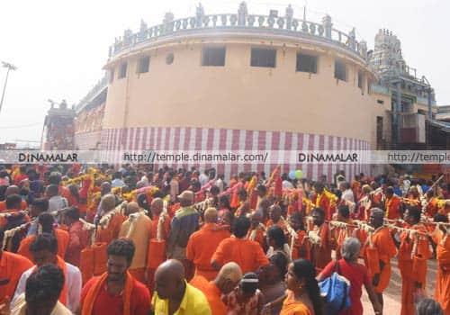 முதல் நாள் தெப்பம்: ஆடிக்கிருத்திகை விழாவில், தமிழகம் உட்பட அண்டை மாநிலங்களில் இருந்து, ஒரு லட்சம் பக்தர்கள் மலர் காவடி, பன்னீர் காவடி, மயில் காவடி மற்றும் அன்னக் காவடிகள் எடுத்தும், பம்பை, சிலம்பாட்டத்துடன் பக்தி பாடல்களை பாடிவாறு மலைக்கோவிலுக்கு சென்று மூலவரை வழிபட்டனர். மொத்தத்தில், நேற்று முன்தினம் இரவு முதல் நேற்று இரவு வரை, ஒன்றரை லட்சம் பக்தர்கள் மூலவரை தரிசித்தனர். அதிகளவில் பக்தர்கள் மலைக்கோவிலில் குவிந்ததால், பொது வழியில் மூலவரை தரிசிக்க, 5 மணி நேரம் நீண்ட வரிசையில் காத்திருந்தனர். திருத்தணி முருகன் கோவிலில், நேற்று இரவு, முதல் நாள் தெப்பத் திருவிழா நடந்தது. மாலை, 6:30 மணிக்கு உற்சவர் பெருமான் வள்ளி, தெய்வானையுடன் மலைப்படிகள் வழியாக சரவணபொய்கைக்கு வருகை தந்தார். தொடர்ந்து அலங்கரிக்கப்பட்ட தெப்பத்தில் எழுந்தருளினார். தெப்பத்தில் உற்சவர் பெருமான் குளத்தை, மூன்று முறை வலம் வந்து பக்தர்களுக்கு அருள்பாலித்தார். திருவிழாவையொட்டி, செய்தி மக்கள் தொடர்பு துறை சார்பில், அரசு பல்துறை பணி விளக்க கண்காட்சி ஆண்டுதோறும் நடந்து வருகிறது.
