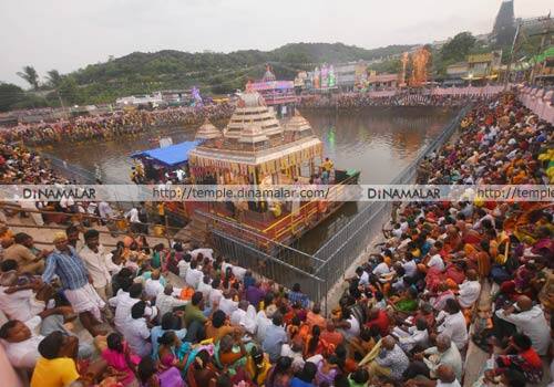 திருத்தணி: திருத்தணி முருகன் கோவிலில், ஆடிக்கிருத்திகை முன்னிட்டு, தெப்பத்திருவிழா சிறப்பாக நடைபெற்றது. தெப்பத்தில் வள்ளி தெய்வானையுடன் முருக பெருமான் எழுந்தருளி பக்தர்களுக்கு அருள்பாலித்தார்.