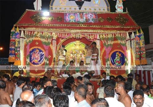 நேற்று முன்தினம் இரவு 10:40 மணிக்கு கோயிலிலிருந்து புறப்பட்டு மாடவீதி, ராஜகோபுரம் வழியாக 16 வண்டி சப்பரத்திற்கு ஆண்டாள், ரெங்கமன்னார் எழுந்தருளினர். அங்கு சிறப்பு பூஜைகள் செய்யப்பட்டு பக்தர்கள் சப்பரத்தை வடம்பிடித்தனர். கோவிந்தா, கோபாலா கோஷம், கோலாட்டம், பக்தர்கள் நாமசங்கீர்த்தனையுடனும் 16 வண்டி சப்பரத்தில் வீதி உலா வந்தது. நள்ளிரவிலும் திரளான பக்தர்கள் தரிசனம் செய்தனர். ஏற்பாடுகளை தக்கார் ரவிசந்திரன், செயல் அலுவலர் நாகராஜன் மற்றும் கோயில் பட்டர்கள், அலுவலர்கள் செய்திருந்தனர்.