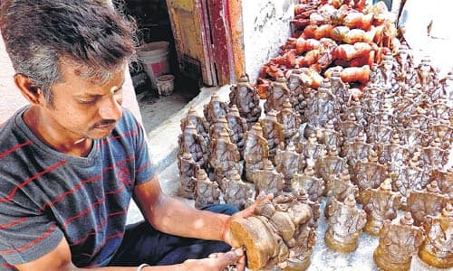 அவர் கூறியதாவது: களிமண்ணால் மட்டுமே சிலைகளை தயாரிக்கிறேன். சுற்றுச்சூழல், இயற்கை, மூலிகைகளை பாதுகாக்கும் வகையில் சிலைகள் தயாராகின்றன. இவற்றை விற்றாலும் இயற்கையை பாதுகாப்பதில் மாணவர்களை ஈடுபடச் செய்ய வேண்டும் என்ற நோக்கத்தில் அவர்களுக்கு சிலைகளை இலவசமாக வழங்குகிறேன். மாணவர்கள் அடையாள அட்டையை காட்டினால் சிலை வழங்கப்படும். சதுர்த்தி முடிந்தவுடன் சிலைகளை நீர்நிலை களில் கரைக்கிறோம். இதனால் அங்கு மண்மேவி விடும். என் சிலைகளை வீட்டிலுள்ள தொட்டியில் வைத்து தண்ணீர் ஊற்றினால் 2 நாட்களில் விதைகள் முளைத்து விடும் என்றார். தொடர்புக்கு 98949 25744.