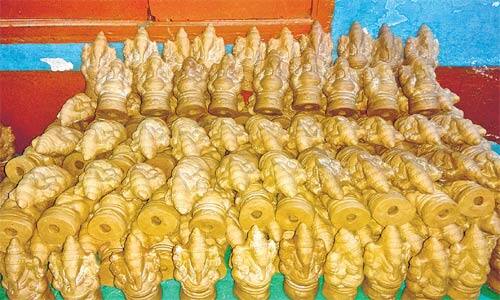வரும் 13 ந் தேதி நடைபெற உள்ள விநாயகர் சதுர்த்திக்காகவிநாயகர் சிலைகள் தயாரிக்கும் பணியில் மண்பாண்ட தொழிலாளர்கள் ஈடுபட்டு வருகின்றனர்.