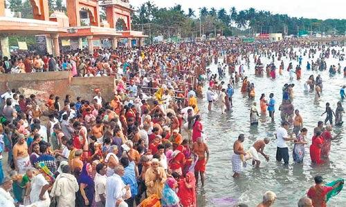 ராமேஸ்வரத்தில் ஆவணி அமாவாசையை யொட்டி, நீராடிய பக்தர்கள்