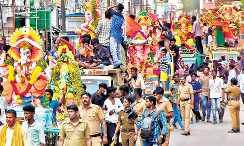 இதையொட்டி ஏராளமான போலீஸ் பாதுகாப்பு போடப்பட்டிருந்தது.இன்றும் (செப்., 15) விநாயகர் சிலைகள் ஊர்வலமாக எடுத்து செல்லப்பட்டு கரைக்கப்படவுள்ளன.