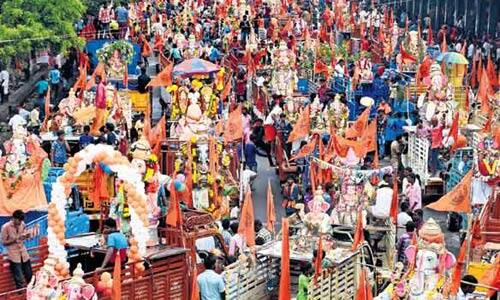 * திருப்பூர் வடக்கு பகுதியில் பிரதிஷ்டை செய்யப்பட்டிருந்த, 500க்கும் மேற்பட்ட சிலைகளின் ஊர்வலம், திருப்பூர் புதிய பஸ் ஸ்டாண்ட் அருகே துவங்கியது; ஈஸ்வரன், செந்தில், சம்பத் ஆகியோர் காவி கொடியசைத்து துவக்கி வைத்தனர்.