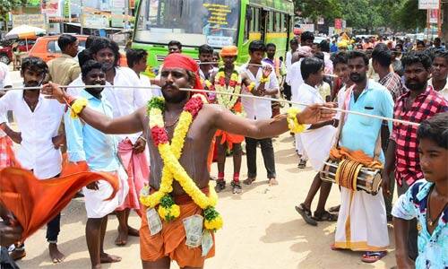 ராமநாதபுரம்: ராமநாதபுரம் சேதுபதி நகர் பகுதியில் உள்ள சந்தன மாரியம்மன் கோயில் திருவிழா நேற்று (செப்., 25ல்) துவங்கியது. முதல் நாளில் கலெக்டர் அலுவலகம் அருகில் உள்ள மல்லம்மாள் கோயிலில் இருந்து பக்தர்கள் பால்குடம், 12 நீள திரிசூலம், வேல், அலகுகள் குத்தி ஊர்வலமாக பாரதிநகர் வழியாக சேதுபதி நகர் கோயில் வந்தடைந்தனர். இதில் ஏராளமான பக்தர்கள் நேர்த்திக்கடன் செலுத்தி அம்மனை தரிசனம் செய்தனர். ஏற்பாடுகளை அப்பகுதி மக்களும், நிர்வாக கமிட்டியினரும் செய்திருந்தனர்.