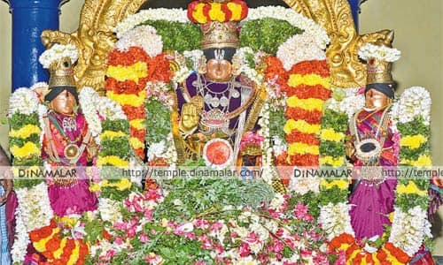 ஸ்ரீவில்லிபுத்தூர் : ஸ்ரீவில்லிபுத்துார் வடபத்ரசயனர் கோயிலில் நடந்த புஷ்பயாகத்தில் பெரிய பெருமாள், ஸ்ரீதேவி, பூதேவி சிறப்பு அலங்காரத்தில் எழுந்தருளினர்.