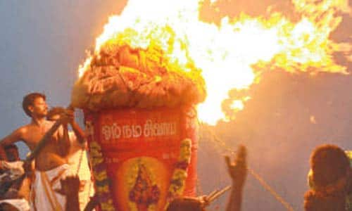 திருவண்ணாமலை அருணாசலேஸ்வரர் கோவிலில், கடந்த, 14ல், தீப திருவிழா கொடியேற்றத்துன் தொடங்கியது. முக்கிய விழா, நாளை, ‘ஏகன் அனேகன்’ என்பதை விளக்கும் வகையில், அதிகாலை, 4:00 மணிக்கு சுவாமி கருவறை எதிரில் பரணி தீபமும், ‘அனேகன், ஏகன்’ என்பதை விளக்கும் வகையில், மாலை, 6:00 மணிக்கு, 2,668 அடி உயரமுள்ள மலை உச்சியில், மஹா தீபமும் ஏற்றப்பட உள்ளது.