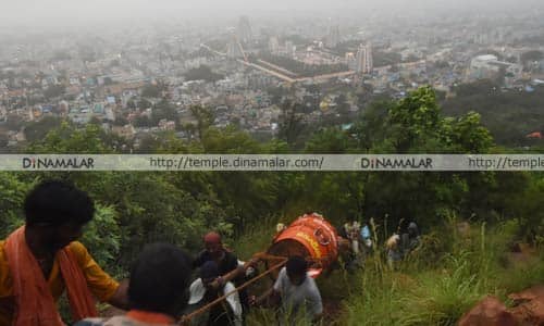 திருவண்ணாமலை அருணாசலேசுவரர் கோவிலில் கொண்டாடப்படும் தீப திருவிழாவில் நாளை(நவ.23ல்) மாலை மஹா தீபம் ஏற்றப்பட உள்ளது. இதை முன்னிட்டு, அதிகாலை 3:00 மணிக்கு கோவில் நடை திறக்கப்பட்டு. அருணாசலேசுவரர், உண்ணாமுலையம்மனுக்கு சிறப்பு பூஜை செய்யப்பட்டது. பின்னர், 150 கிலோ எடை, ஐந்து அடி உயரம் கொண்ட மஹா தீப கொப்பரைக்கு சிறப்பு பூஜை செய்யப்பட்டு, ‘அண்ணாமலையாருக்கு அரோகரா’ என பக்தி கோஷத்துடன் 2,668 அடி உயர மலை உச்சிக்கு கொண்டு செல்லப்பட்டது. மலை உச்சிக்கு கொட்டும் மழையையும் பொருட்படுத்தாமல் கோவில் ஊழியர்கள், தீப கொப்பரை எடுத்து செல்லும் பணியில் ஈடுபட்டனர். காலை முதல் தொடர்ந்து மழை பெய்ததால், மலை ஏறும் பாதையில் பாறைகளில் ஏற பணியாளர்கள் மிகவும் சிரமப்பட்டனர்.